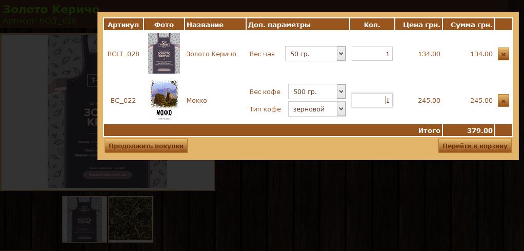 - Наш заказ 379 грн. Нажимаем "Перейти в корзину"
