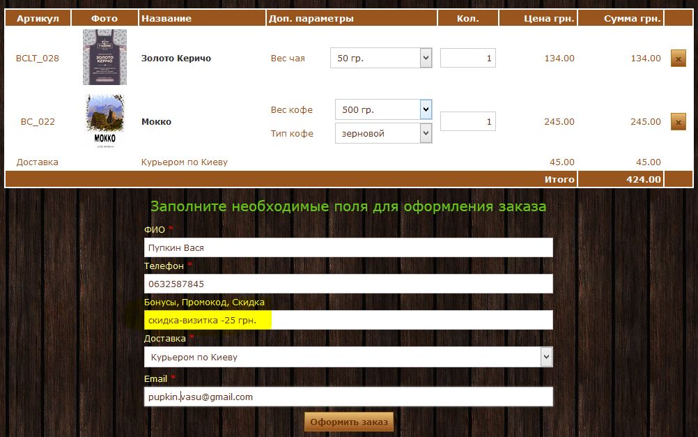 Итак сумма заказа 424 грн.Бонус - 25 грн.Бонус дает бесплатную доставку - 45 грн.Итого заказ 354 грн. 70 грн. экономии на покупке.